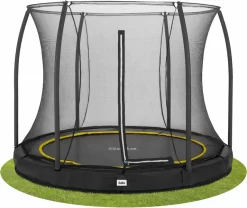 Doordat dit een flatground model is, is deze trampoline volledig weggewerkt in de grond. Hierdoor is deze optimaal verwerkt in je tuin en staat hij dus erg mooi. De AirStream springmat van deze trampoline is extra luchtdoorlatend, waardoor de lucht tijdens het springen kan ontsnappen. Dit zorgt voor een soepele en hoge sprong. Bij lagere kwaliteit flatground trampolines zul je merken dat de sprong heel stroef is, omdat de springmat niet genoeg lucht doorlaat. Het frame zelf wordt 22 cm in de grond geplaatst en is voorzien van een PVC bekisting die de trampoline extra beschermd tegen bijvoorbeeld vuil, (regen)water en insecten.