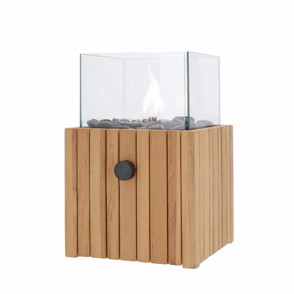 Wil je meer warmte, romantiek, gezelligheid en sfeer in je tuin of op je terras? Steek dan deze Cosi Cosicoop Timber aan en steel de show bij je vrienden. Deze teakhouten gaslantaarn neem je makkelijk met je mee, want hij weegt maar 4 kg. Het is bovendien een lekker compact modelletje, want hij is 30 cm hoog en 20 cm breed. Deze gaslantaarn wordt geleverd inclusief het glas en de kiezelstenen. Om jouw lantaarn te laten werken heb je alleen nog een 190 gram gascartouche nodig. Let op: kies een gascartouche met een gas-stop-systeem. Als de gaslantaarn het contact met de cartouche verliest, dan gaat het stop-systeem automatisch in werking: super handig.
