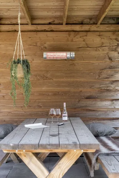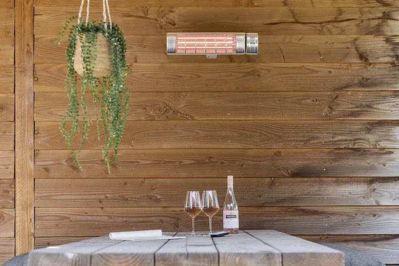 De Halogeenlamp in deze terrasverwarmer verwarmt niet de lucht op jouw terras, maar alle voorwerpen binnen het bereik van de heater. Niet de lucht, maar je lichaam wordt dus verwarmt door deze terrasheater. Hierdoor werkt de infraroodstraler zeer effectief en is hij ook geschikt voor op een open terras. Wanneer je de terrasverwarmer met de afstandsbediening aanzet, geniet binnen no-time van de heerlijke intense warmte.