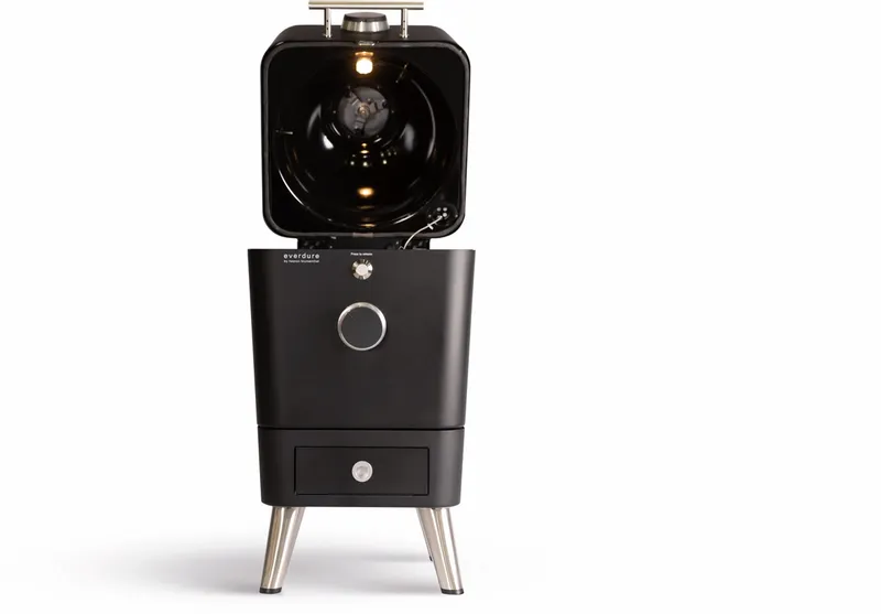 Een van de innovaties van de Everdure 4K is het Fast Flame Ignition System. Met een klik op het touchscreen scherm wordt de elektrische ontsteking van de barbecue geactiveerd. Dankzij deze ontsteking is de houtskool binnen 7-10 minuten op temperatuur en kan het barbecueën beginnen. De 4K is een houtskoolbarbecue met elektrische ontsteking en is dus geen elektrische barbecue.