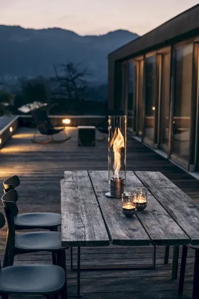 De Höfats Spin 90 is een tafelvuur van Höfats dat door de roterende vlammen een gezellige sfeer creëert op je terras. Het mooie vlammenspel brengt de gezelligheid van een kampvuur naar jouw tuintafel.