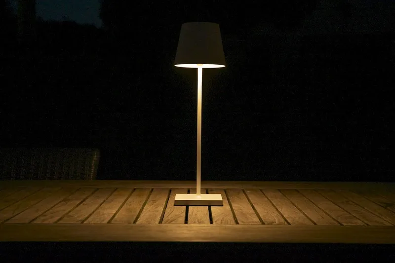 Deze tafellamp van Lucide kun je neerzetten waar je maar wilt, want hij werkt namelijk op accu. Wanneer de lamp volledig is opgeladen geeft deze tot wel 9 uur lang licht op het maximale wattage. Heb je liever wat sfeervoller licht, dan dim je de lamp eenvoudig door een lichte aanraking van de sensor op de lamp. Is de accu leeg na wat avondjes genieten van de sfeervolle verlichting van deze buitenlamp? Dan laat je hem eenvoudig weer op via de meegeleverde USB-kabel.