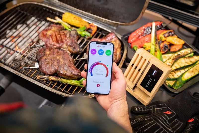 De MEATER block is verbonden met de MEATER app waardoor het bakken en grillen van gerechten een gemakkelijk klusje wordt. De app is gratis te downloaden in de Appstore van iOS en Playstore van Android. In de MEATER app kun je gemakkelijk het gerecht kiezen wat je wilt bereiden en of je het rare, medium of well done gebakken wilt hebben. Door middel van een geavanceerd algoritme bepaald de app de geschatte grilltijd van je gerecht. Verder neemt de app je mee door elke stap van het proces wat zorgt voor een gegarandeerd succes.