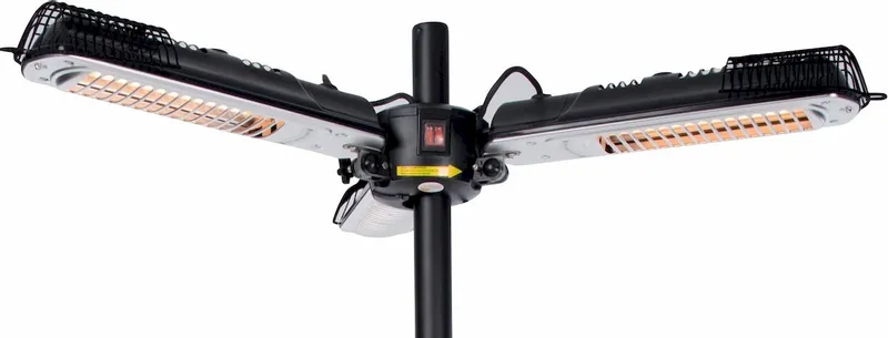 De Sunred Parasol Heater 2000 is een terrasverwarmer die speciaal voor onder je parasol is. De 3 verwarmingselementen zorgen ervoor dat niemand het koud hoeft te hebben. Zelfs als de temperaturen, zit je er met deze krachtige terrasverwarmer heerlijk warm bij.