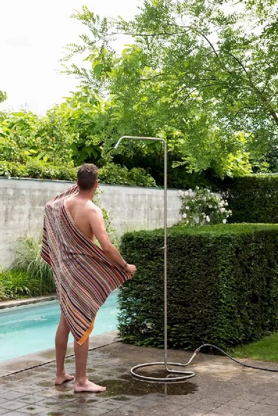 De Weltevree buitendouche is erg gemakkelijk te installeren, want je sluit hem gewoon aan op de tuinslang. Met de comfortabele waterstraal waan je je al gauw op een chique vakantieoord in een warm land. En dat allemaal gewoon in je eigen achtertuin!